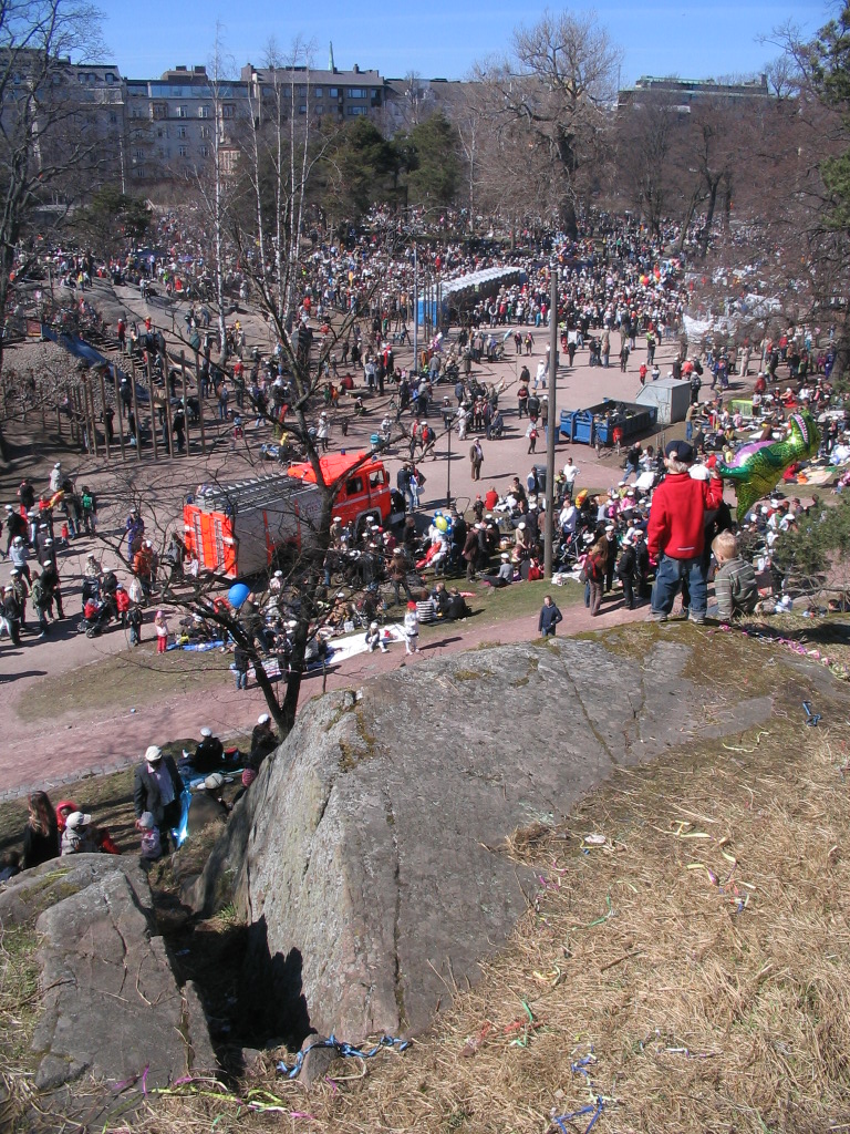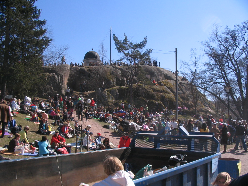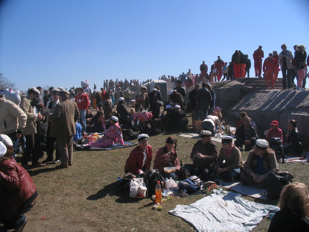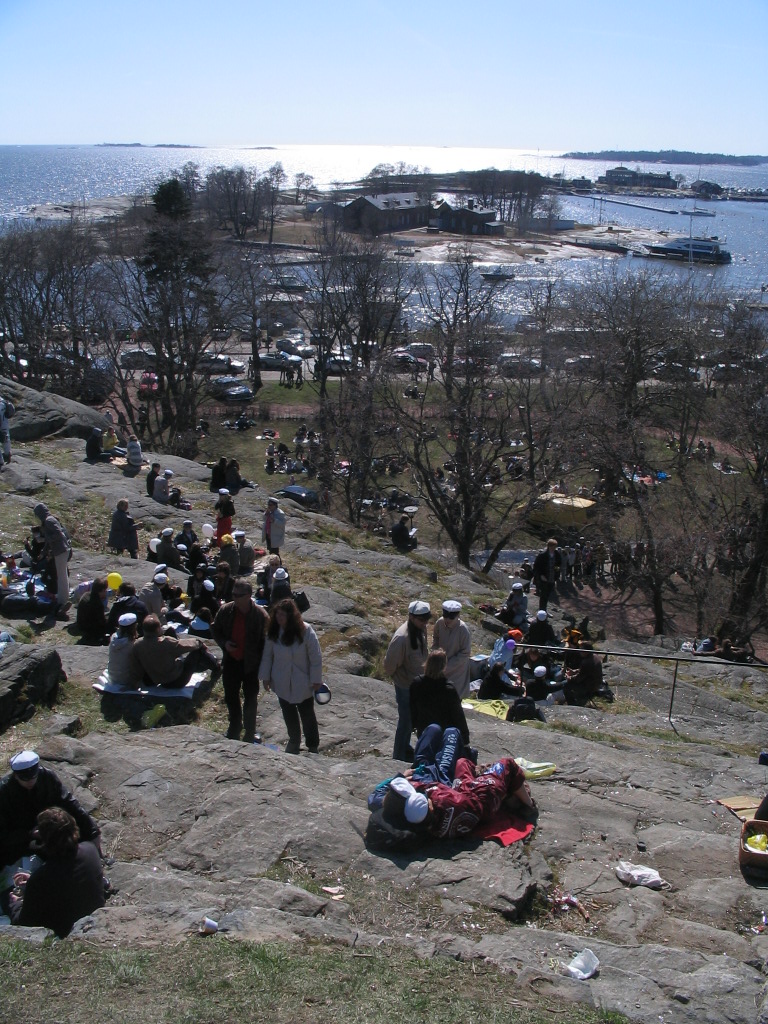 Kaivopuisto is a main hangout spot on Vappu, so we went there. Since it was another nice sunny day, everyone in town was catching rays on the grass.