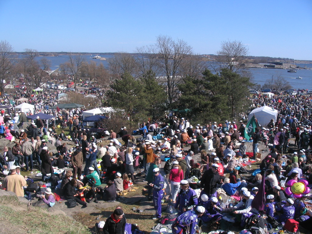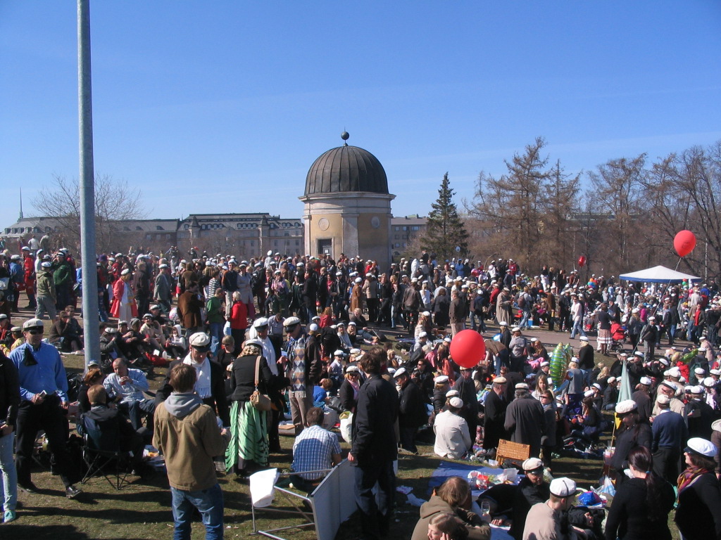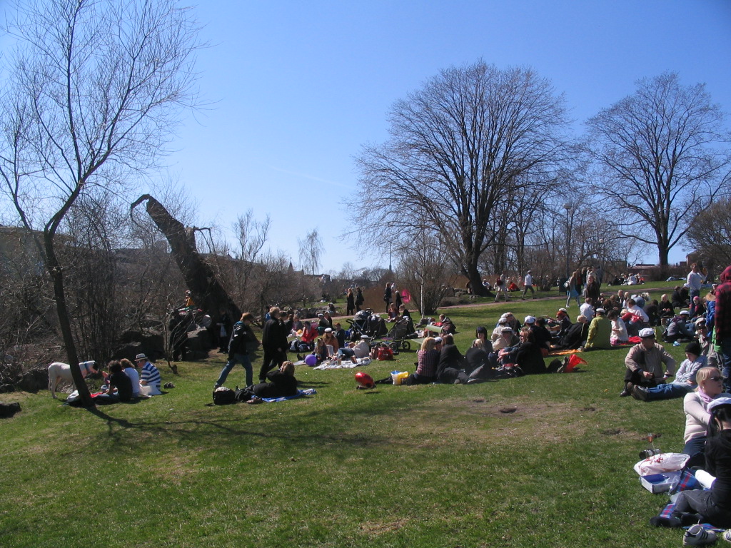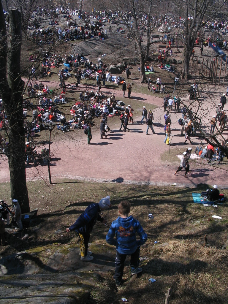 Kaivopuisto is a main hangout spot on Vappu, so we went there. Since it was another nice sunny day, everyone in town was catching rays on the grass.