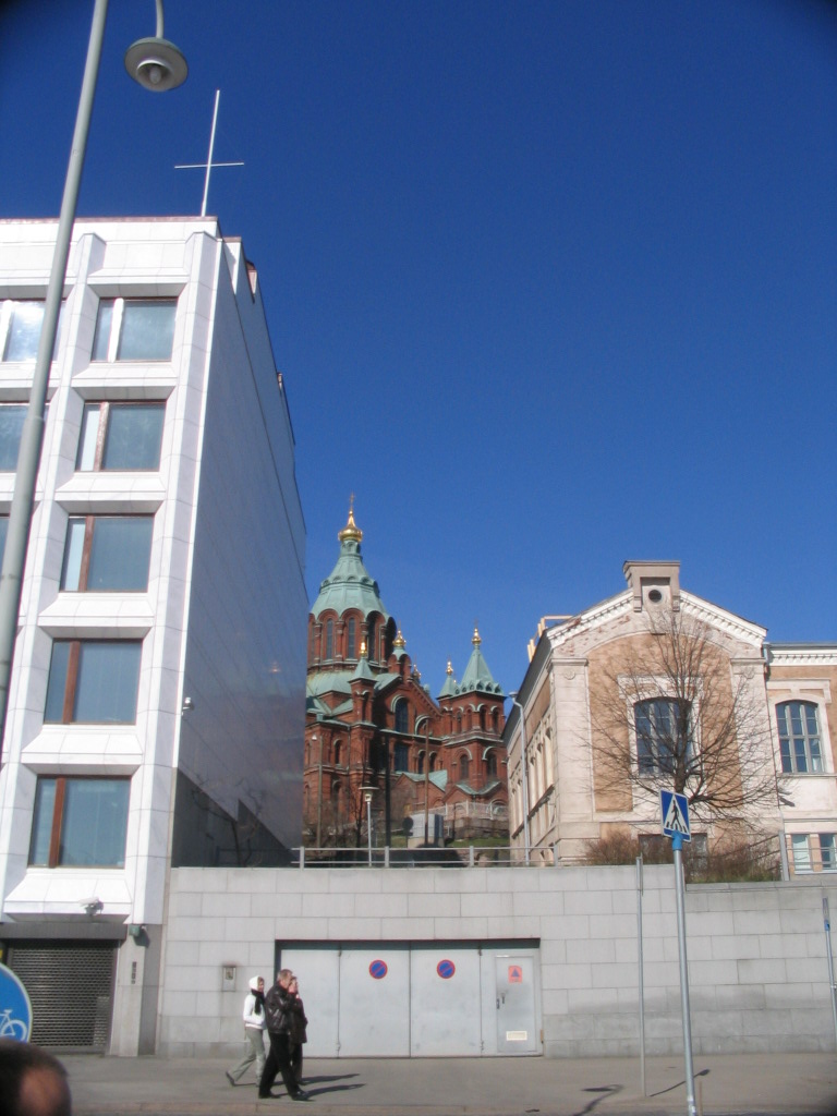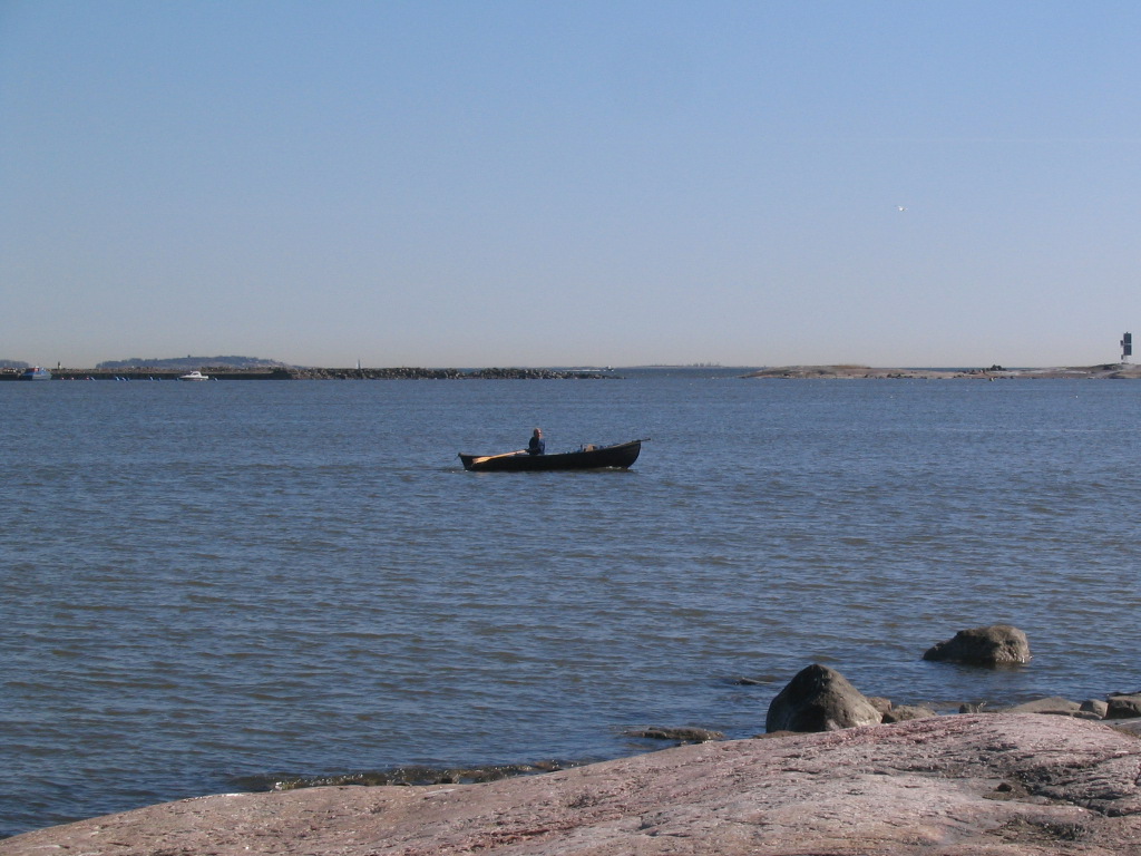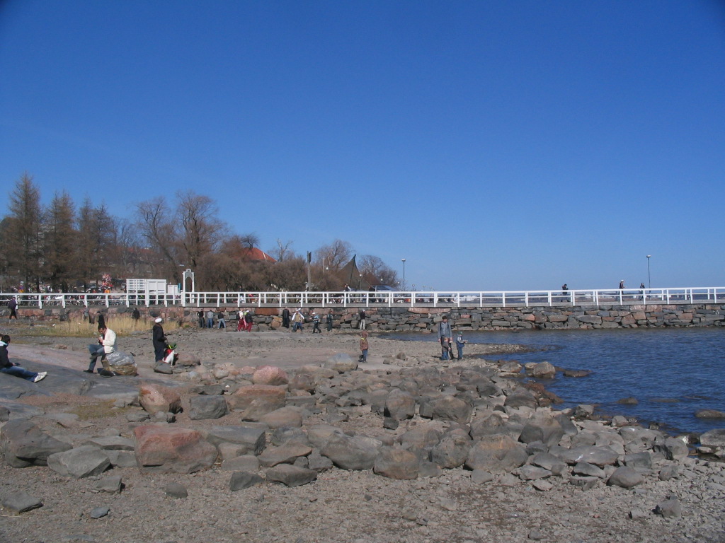 Out beyond the shore, Uunisaari, the island sauna that was our first sauna experience in Helsinki way back at the beginning of the semester, now enjoying much more clement (specifically, less icy) conditions.
