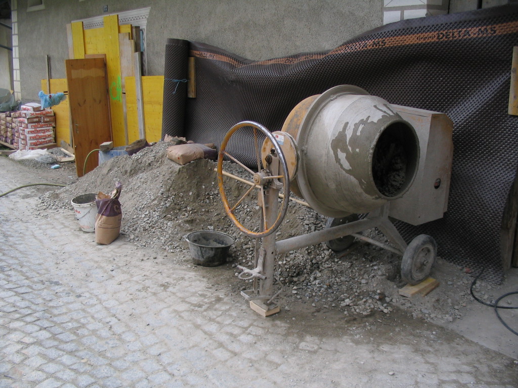 Well something's going on here. Check out the temporary doorway at left — it's full of mysteries: why are those plywood sheets yellow? Are they even plywood? Why are they apparently layered flat against each other to fur out the door from the masonry wall?