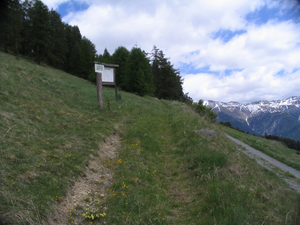 Further up, getting close to the forest edge, with signs indicating protected land.