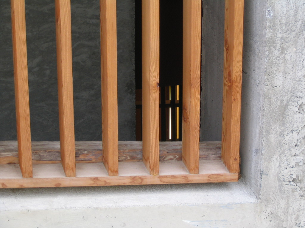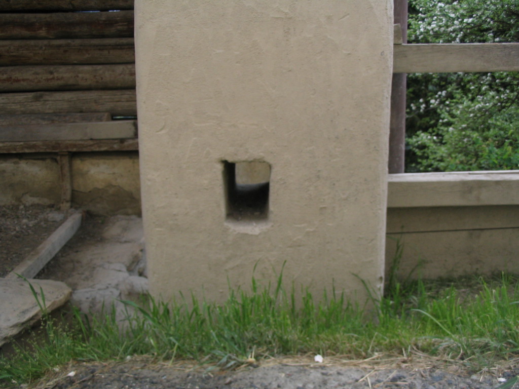 ...and how the hole at left in the previous picture goes all the way through. Note in the previous picture that there's another hole in the wall of the house that looks like it might be aligned with this one. A way to place a bar across the steps going down to the right? Hmm...