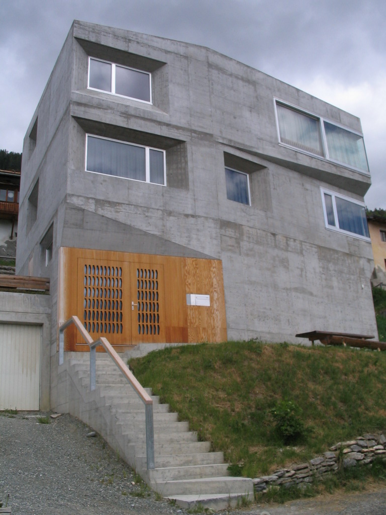 Whoa! This house could survive an avalanche in any direction. I like the entrance quite a bit. The house was profiled in the NYT a while ago.