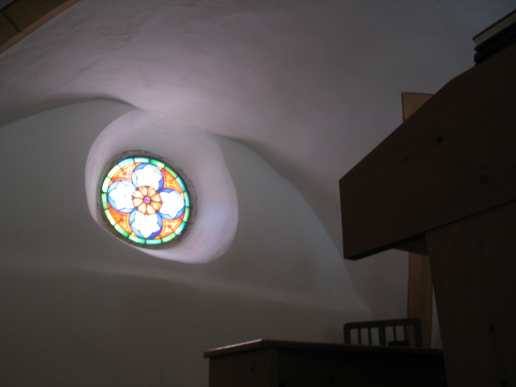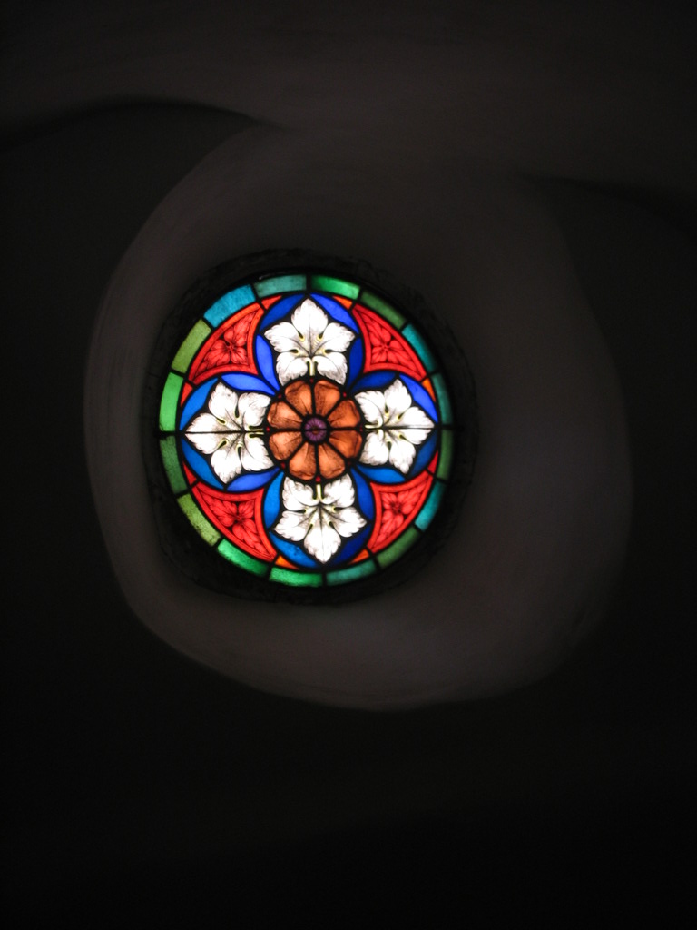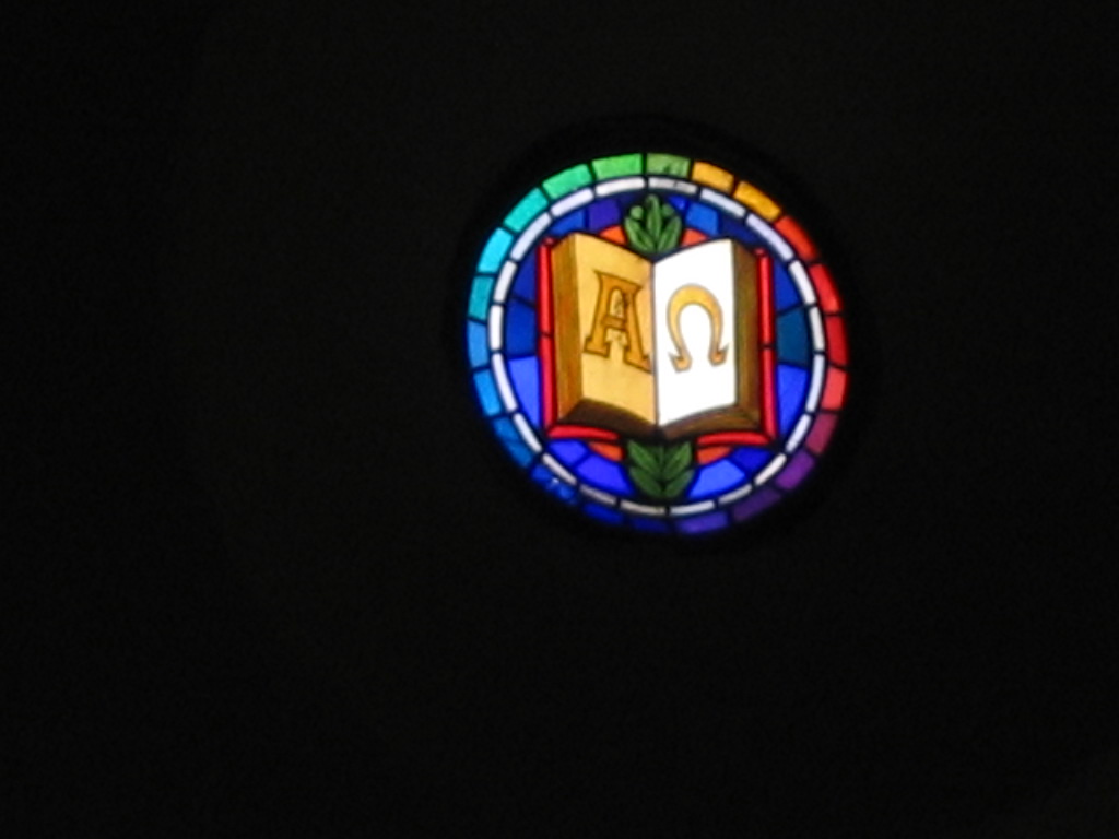 The rose window has a counterclockwise color wheel, which along with the alpha and omega pretty much makes it the bee's knees for me.