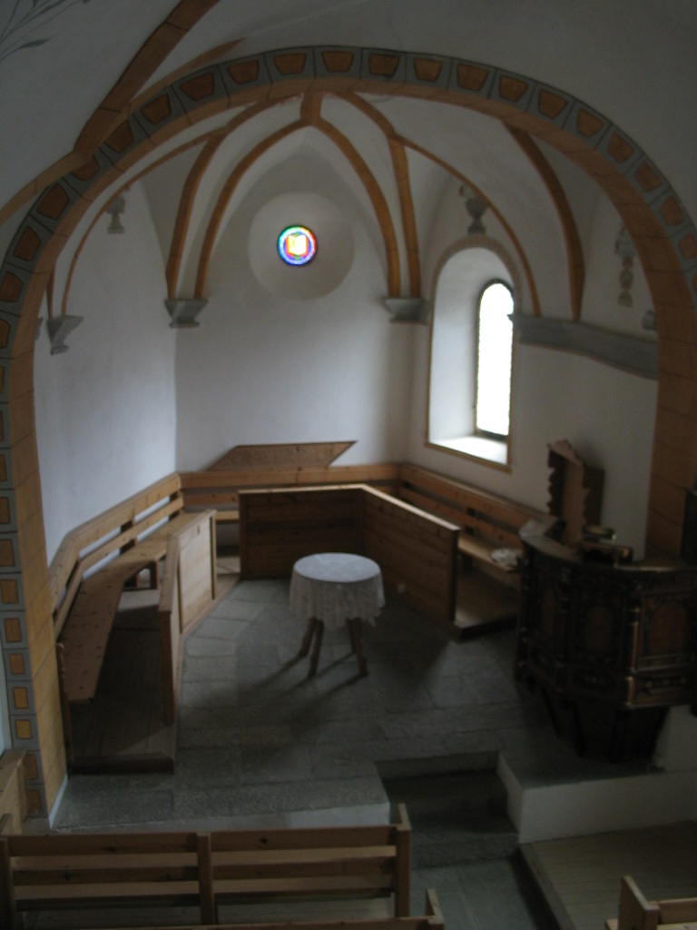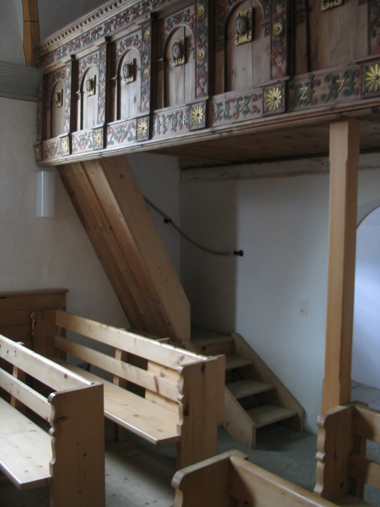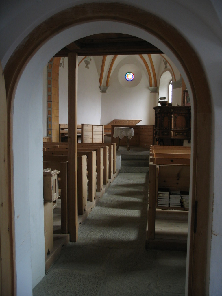 It appears to date from 1671. Like most of the Engadin churches, this one is a Reformed church.