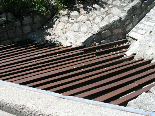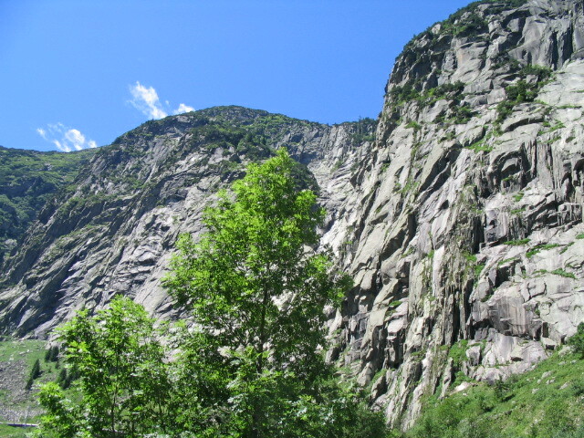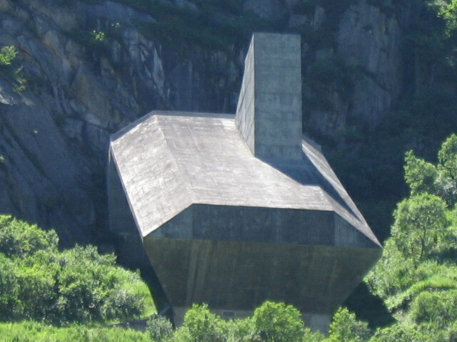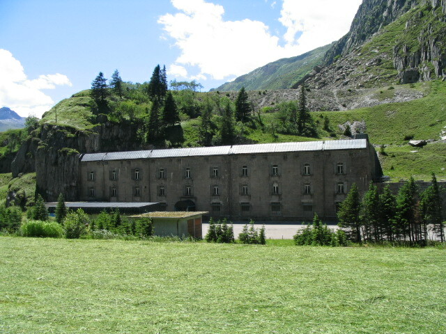 A mysterious hulk of a structure some distance away. I find that rocky parts of the Alps are one of the few places where monolithic concrete structures like this harmonize well with their context.