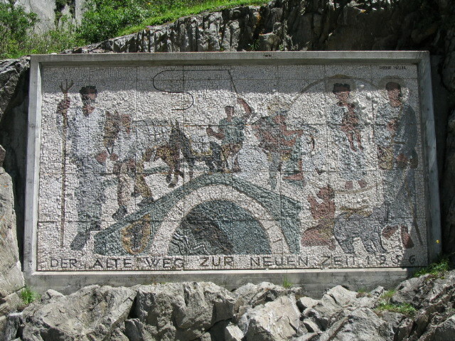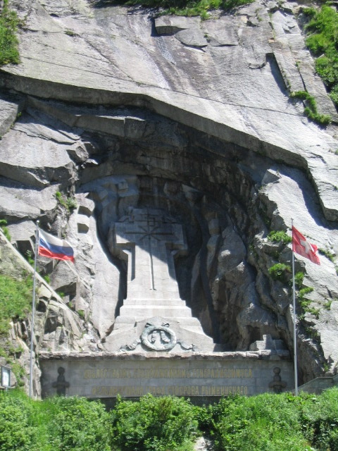 A Russian memorial, of all things; I think this must be related to the Russian army's conflict with Napoleon's troops in Switzerland. Quite a grand piece; it reminds me of the Bamyan Buddhas.