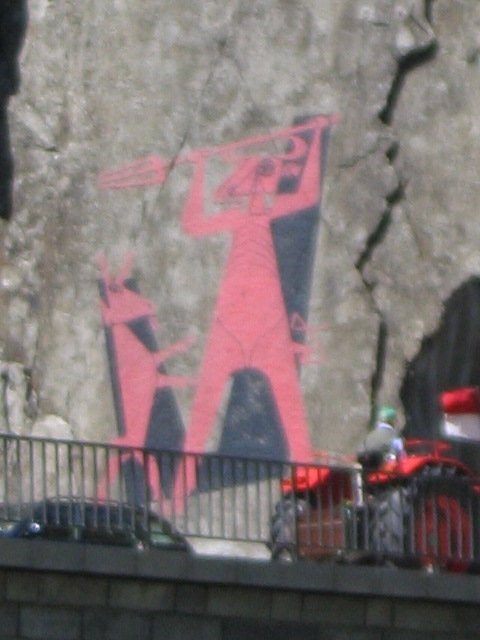 Which explains this huge Picassoid devil and goat painted on the rock. The legend was that Lucifer himself built the first stone bridge and in return demanded the soul of the first person to cross the bridge, but people tried to make a loophole and sent a goat across the bridge first. (No dice.) Aw dang, there's another tractor too.