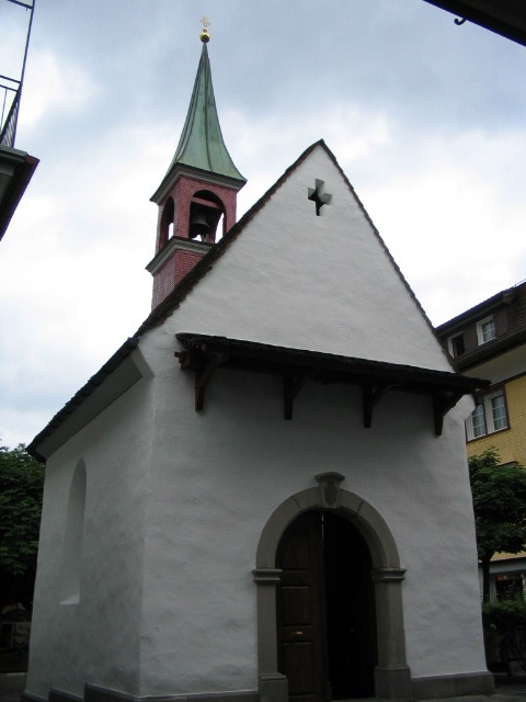 A pretty chapel sandwiched in in the village.