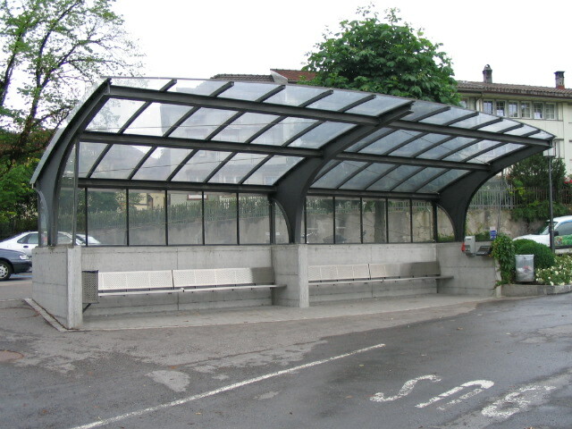 Bus stop — probably the most futuristic design in town.