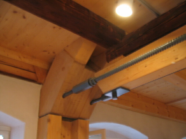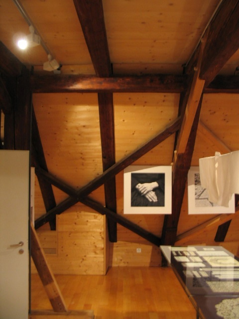 The museum has lots of great tectonic details; it's sort of a carved-out renovation of its host building. Here: beams and tension rods.