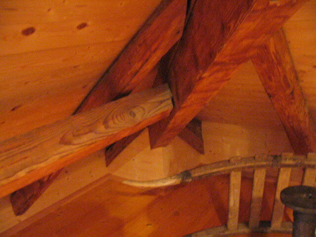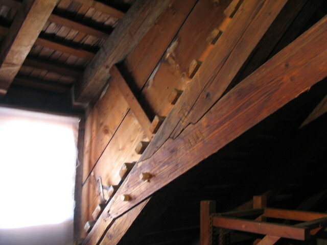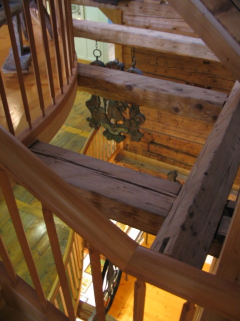 This huge laminated arch beam holds the roof up but this is still exhibition space on this floor, which is really cool.