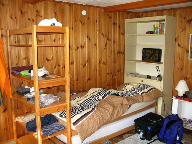 In my vacation apartment in Hofstetten, which was very reasonably priced. The feather puffs that are ubiquitous on Swiss beds are divine.