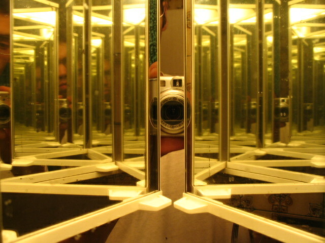 One evening after touring Ballenberg, I played around with the multiple mirrored doors of the bathroom cabinet.