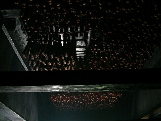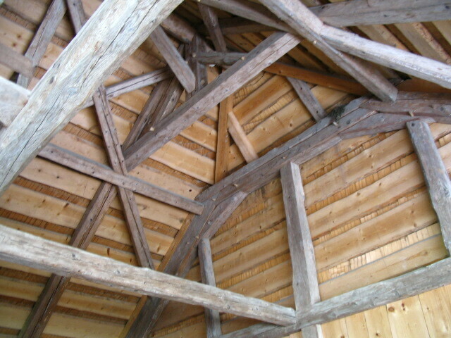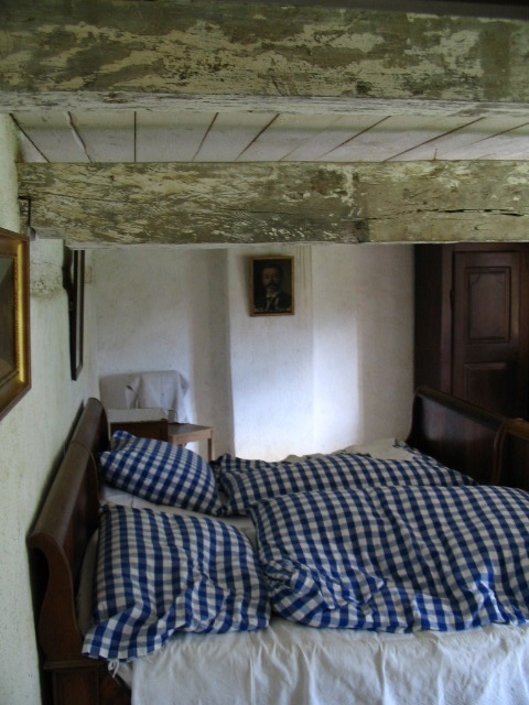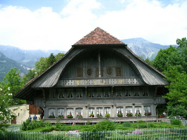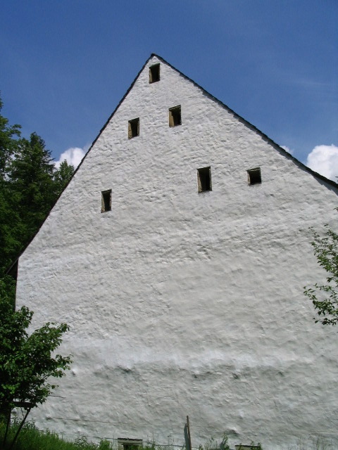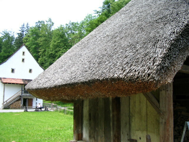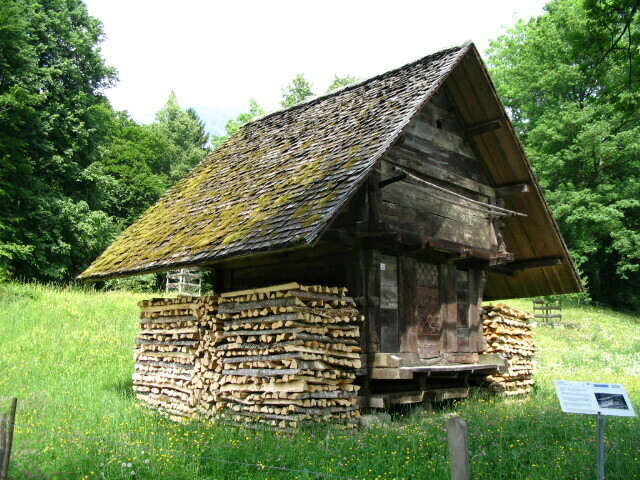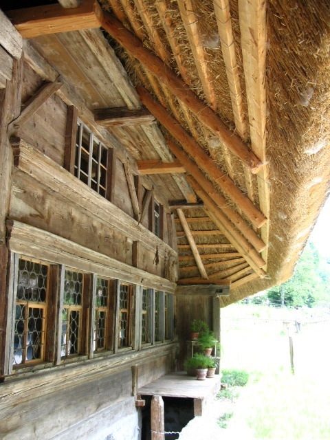 This house, a farmhouse from Madiswil, Bern, 1709, has an open fireplace for cooking and heat, without a chimney, and so the resultant numerous health problems for any inhabitants are accompanied by the opportunity to smoke meats right inside the house.