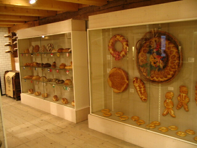 Ain't nothin' but a NUMBER OF HUGE BREADS PRESERVED BEHIND GLASS. Those pretzels below are looking pretty good too.