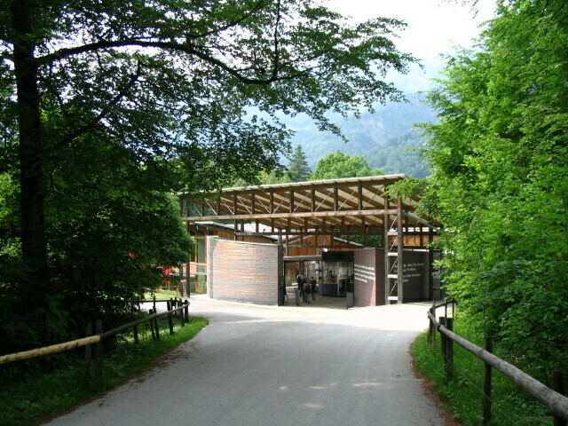 The vernaculo-modern west entrance to the museum, occluding a view of Hofstetten, a few fields beyond.