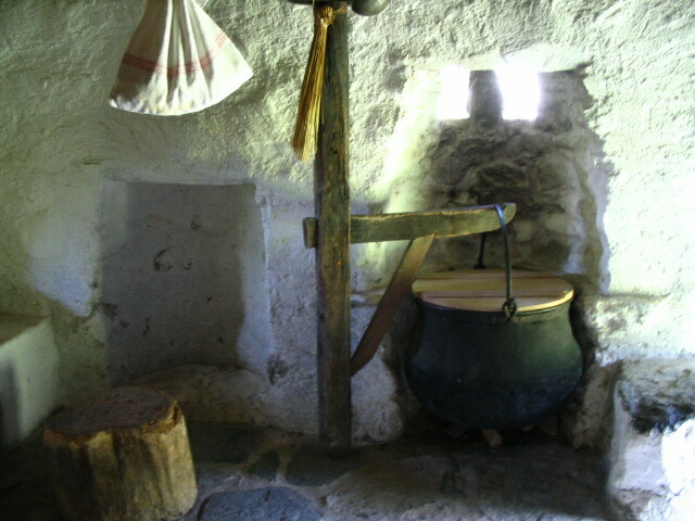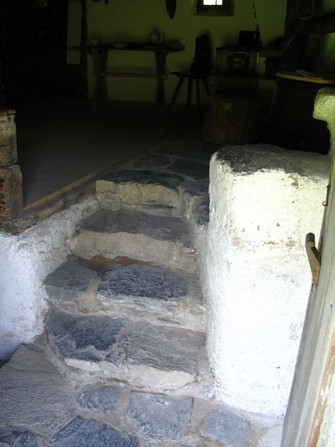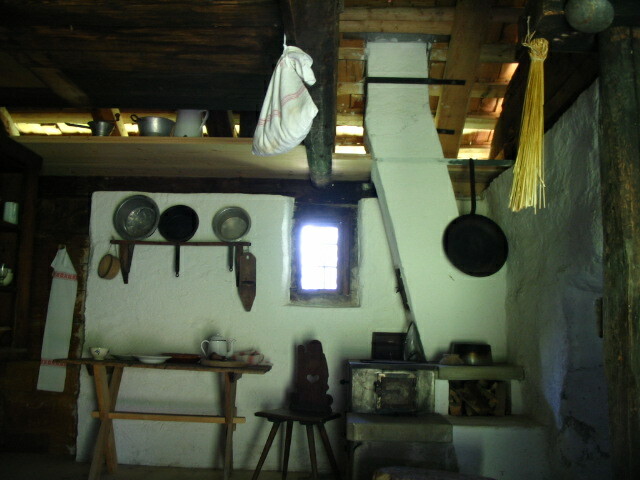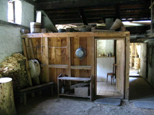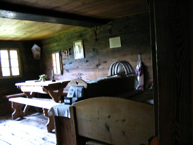 This is inside a Maiensäss from Buochs, Nidwalden, 1788. "Maiensäss" refers to a building intermediate in elevation between the valley settlements and the high alpine agricultural settlements (which are simply called alps, as in the Champatsch buildings above). I really loved everything about this room; I think it had something to do with the change in floor level within the already tiny space...