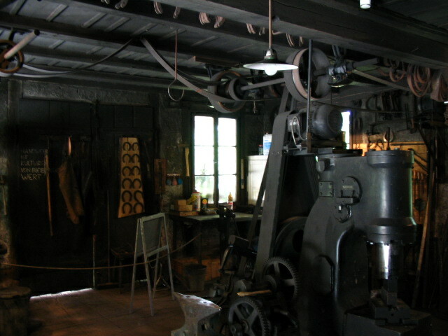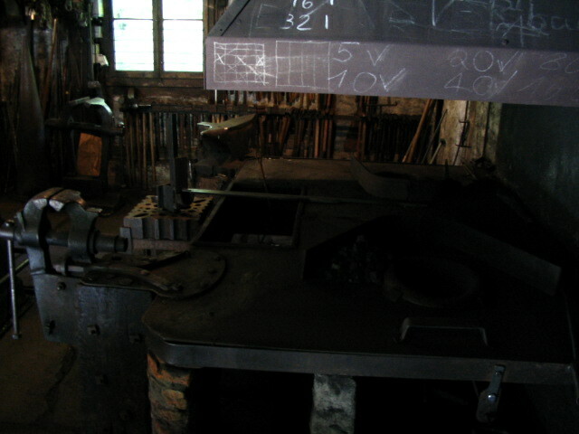 Another view of the smithy. This may well be one of the many places at Ballenberg where traditional crafts and industry are demonstrated, so those chalk notes on the hood may be recent, though it'd be cool if they were 150 years old.