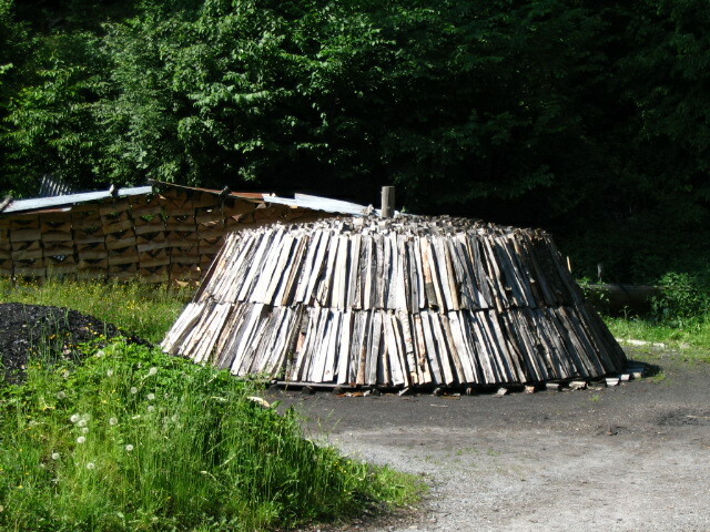 A pile of wood to be burnt for charcoal — that's the reason for the careful arrangement. You can see the "after" version off to the left.