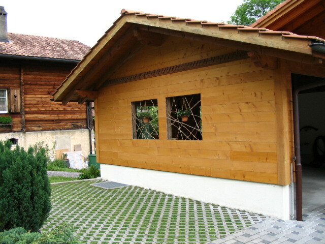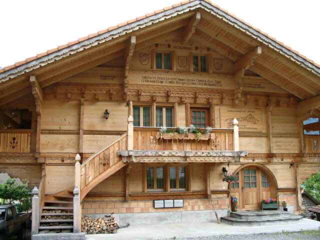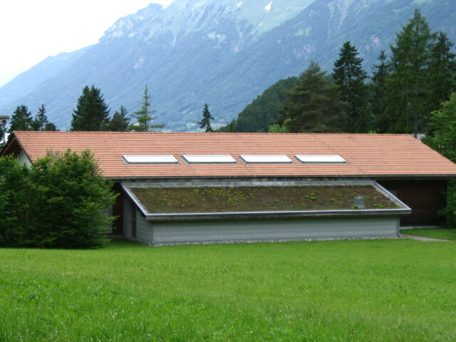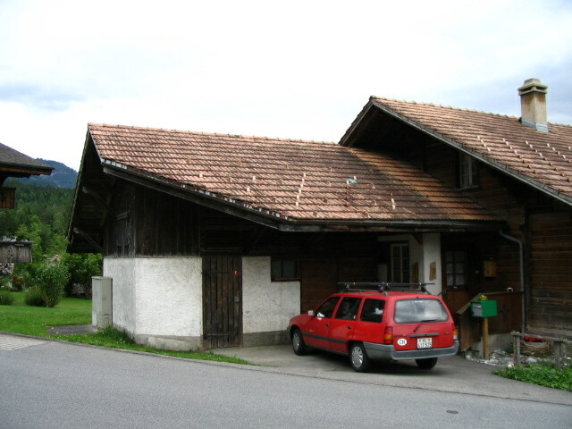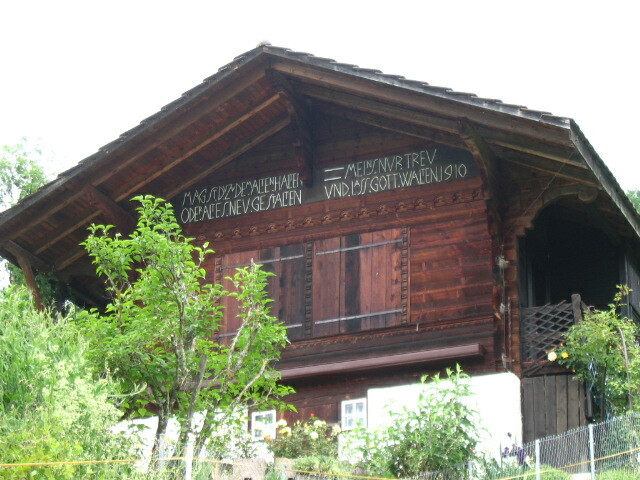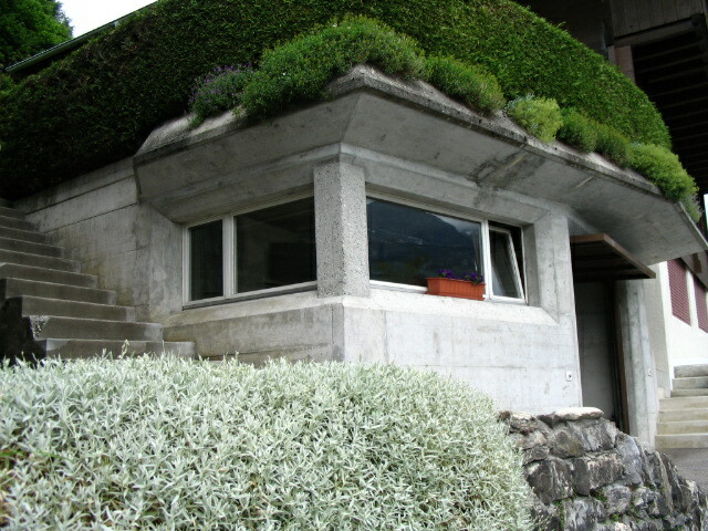 The next few photos are from Schwanden, halfway between Hofstetten and Brienz. Quite the bunker of a first floor this, but nicely softened by the hedges and overhanging plants above and in front.