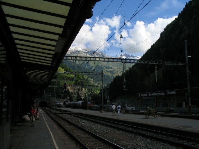 Goppenstein station while we waited for the train: with this picture, both my camera memory cards were full. I had had to ration pictures rather carefully ever since the initial photographic spree at Ballenberg, but this still meant a capacity for thousands more — a large fraction of which you have now seen if you've arrived here by going through the whole gallery.