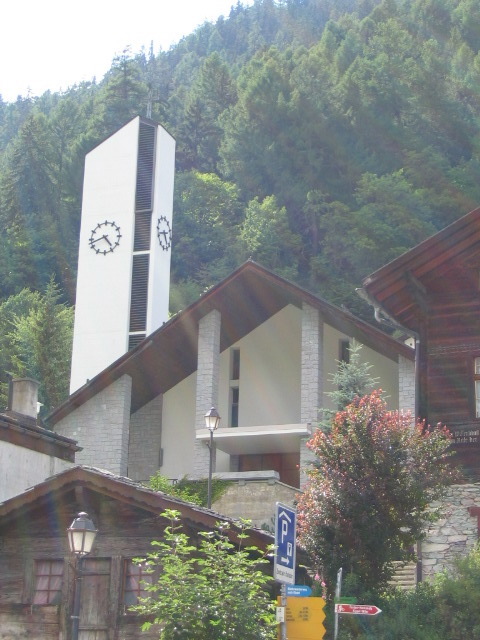 A smaller church. I like, again, the contrast between the dark trim and the light walls.