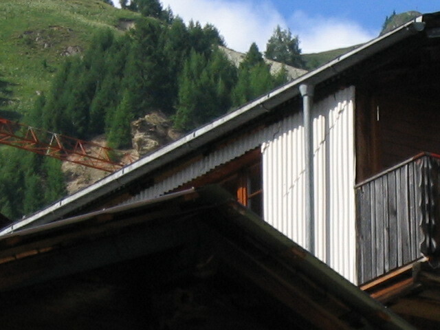 This is a confusing shot at first. I think I took it just to note the corrugated metal siding, which is certainly unusual here — especially since it appears to be enclosing a residential space rather than an industrial one, judging by the window recessed into it.