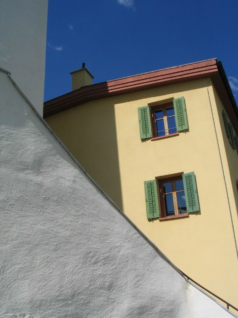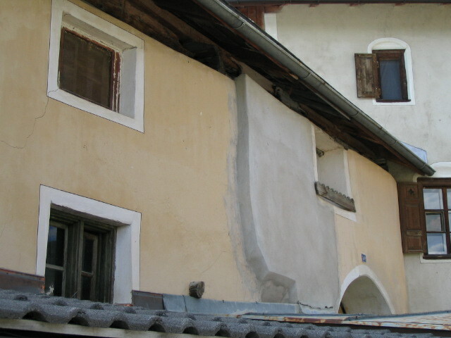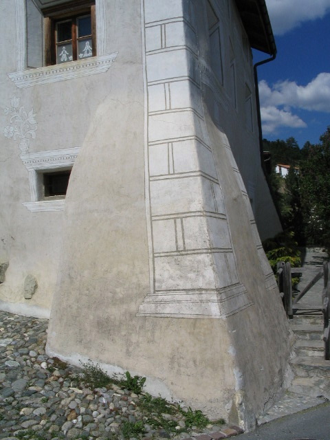 Overall view of the big-buttress house. It looks like it's stepping forward.