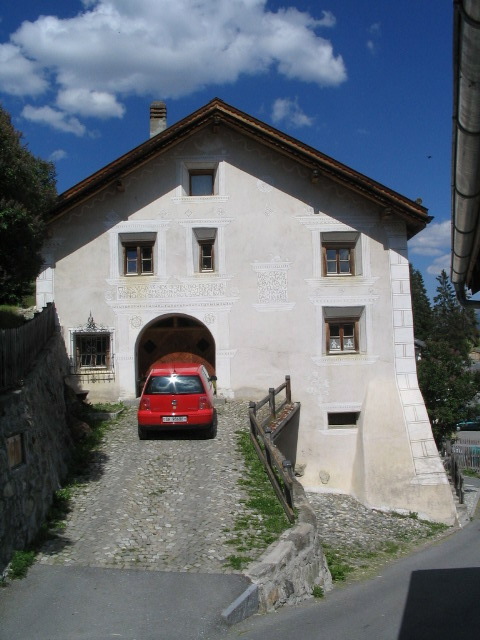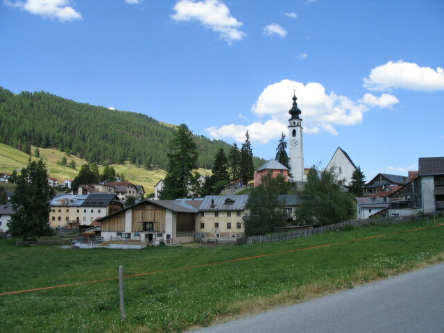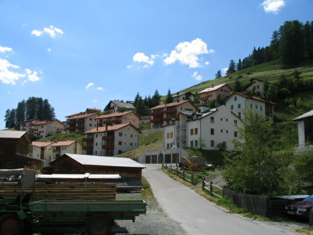 Looking back up to Ftan-Grond on the way back down to Ardez.