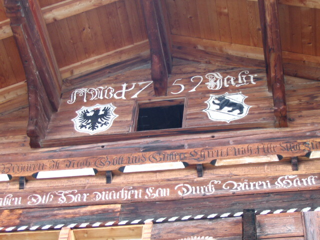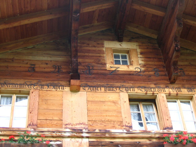 We see that this house was built "im 1728 Jahr." The engraving of the lighter areas brings up a question — are these places where wood was replaced, so that the engraving had to be redone?