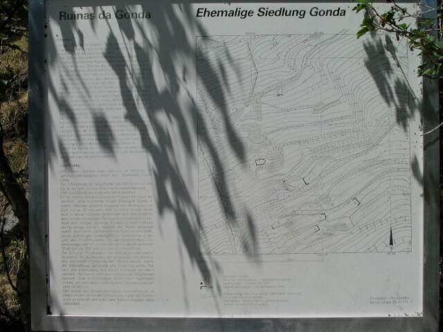 This placard explains how Gonda was a hamlet here between Lavin and Guarda that was ruined by an avalanche — good thing the shelter was there, though I don't know how much good it did. This is rough country indeed.
