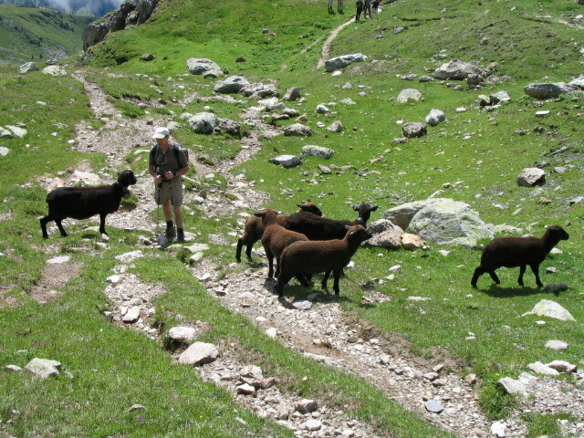 For a long time, the sheep continued along the hiking trail in front of me, thinking I was herding them.