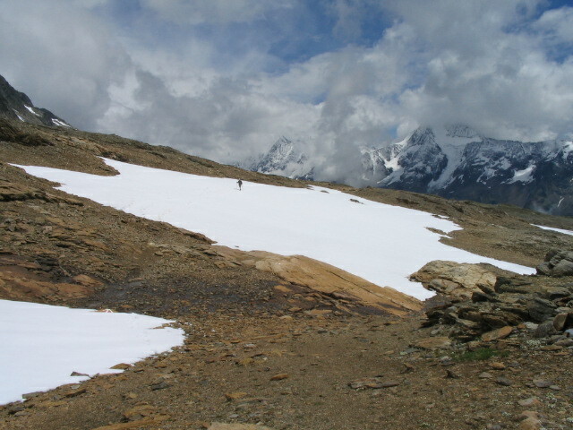 Up near the pass, we had to walk across a number of snowfields. This was nothing compared to what we encountered after the pass.