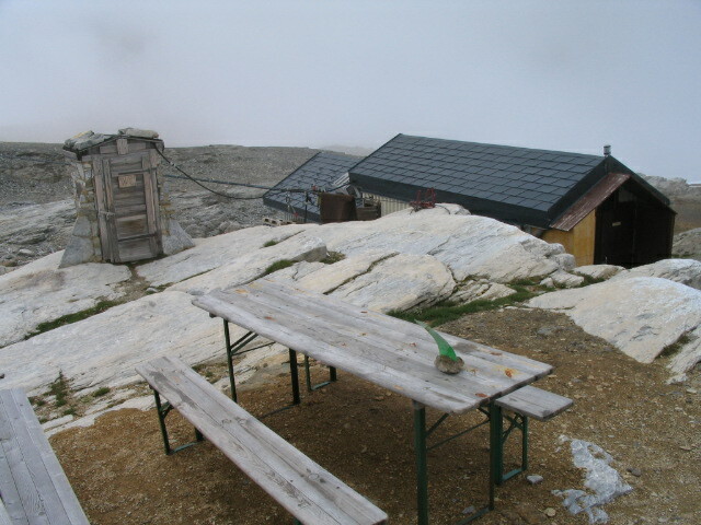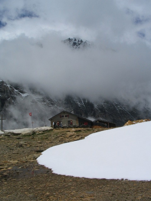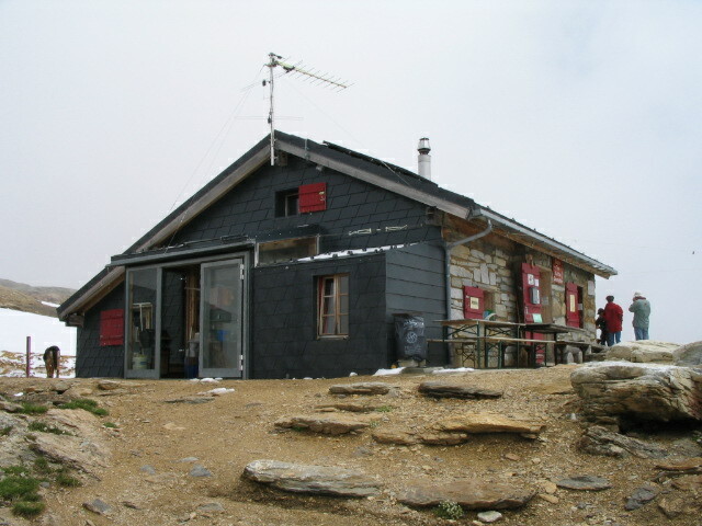 Here is the pass hut now in view, a very welcome sight after the first false alarm.