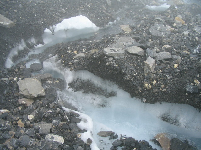 Here is the ground surface: a single layer of rocks over the ice of the glacier.