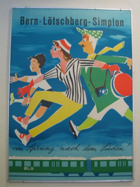 Back in Kandersteg station again, another dang poster. ("BLS: a Jump toward the South!")