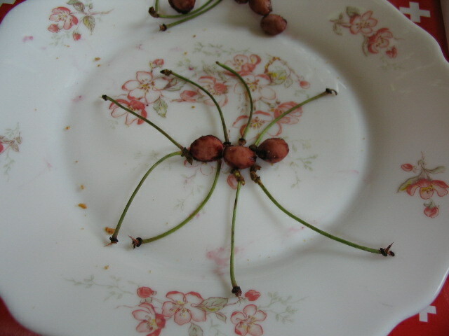 We had cherries to eat after we returned to Blatten and I made a bug with the pits and stems.