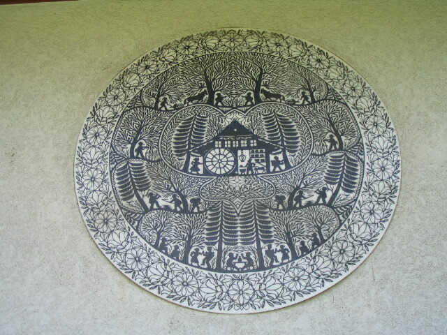 A huge medallion — something like a meter in diameter — on the wall of a building back in Oey.