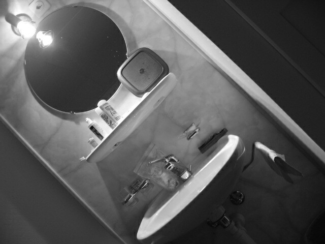 Sink in my room. I liked the light a lot because it was maybe a halogen — at any rate a clear, bright point light, multiplied by the mirror to give a sort of jewel-like quality of casting.