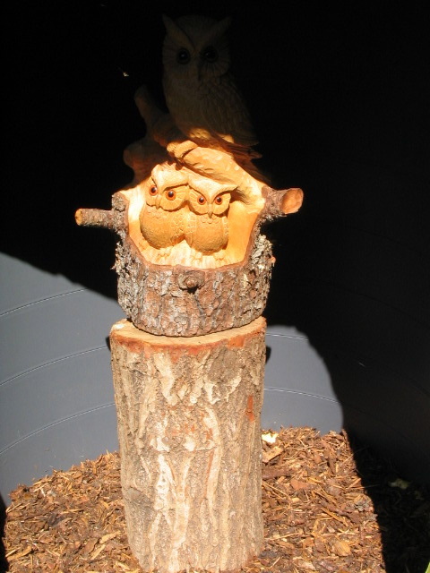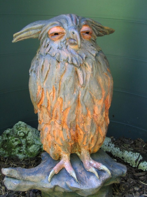 This is the one that I think was made by the grasshopper man, because its construction (concrete skin over styrofoam) was the same. The base housed a display about the making of this and other sculptures and also contained a bunch of additional small (and adorable) owls.