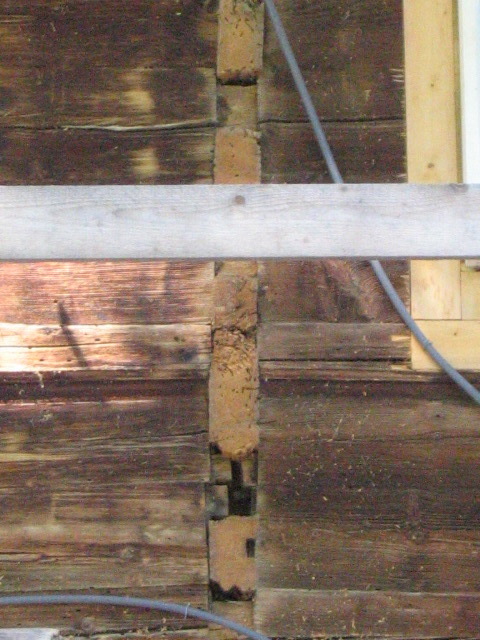 Here's an area of wall that would usually be covered up; it looks like the projecting beams might have been cut back flush with the wall, but I'm not sure.