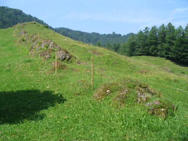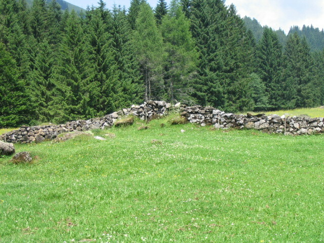 Stone wall — this is in an area of high seasonal farming settlements (an Alp).
