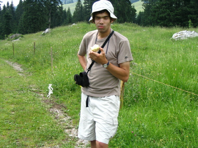 Here's some goofball eating an apple on the trail. (What is that white thing just up the trail?)