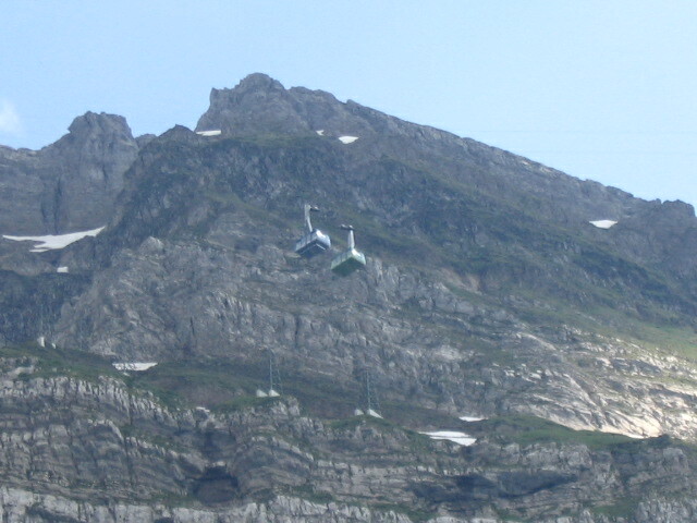 Two cablecars passing each other on the way up to/down from Säntis.