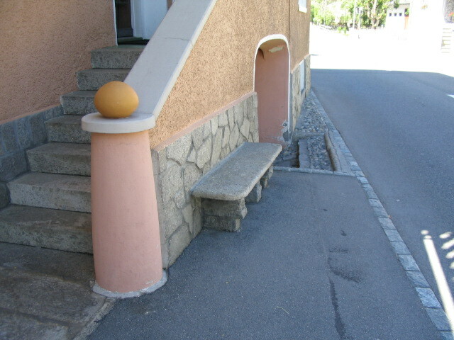 I love when different elements appear all to be carved out of the same mass. The corner post is rather whimsical in its rotundity, too, I think.