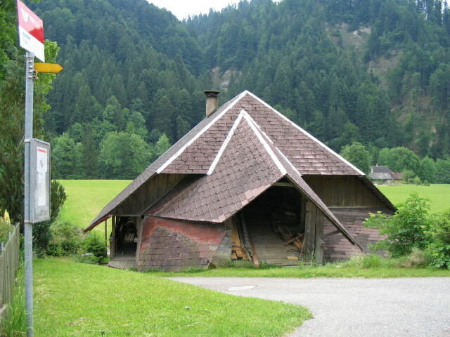 Up in the center of the village of Trub: an unusually shallow-roofed wing of a house.