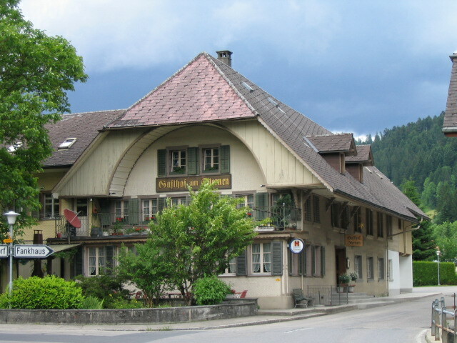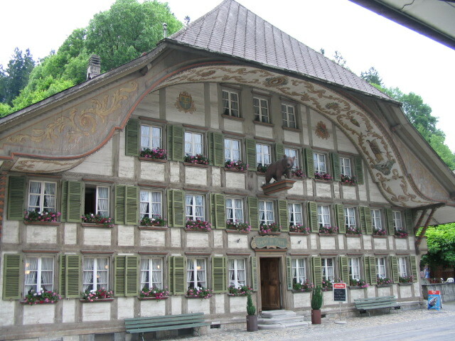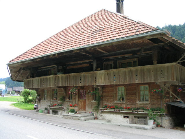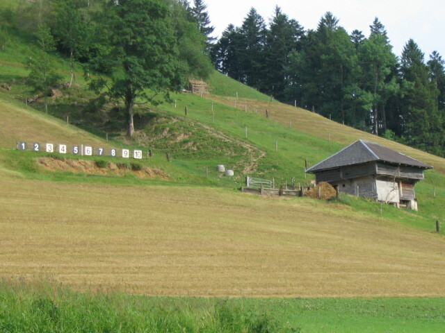 I bushwhacked up the slope (it was intense) to the east of Trub village, up to open fields with scattered farms, and hiked along the high road and eventually down to Trubschachen, the next, rather larger, town downstream from Trub.