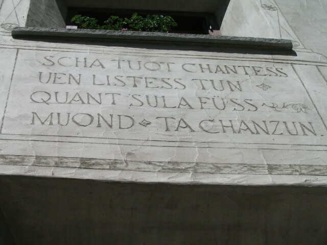 The lettering on the signal building at the station, in a style shared by the other Engadin train station.