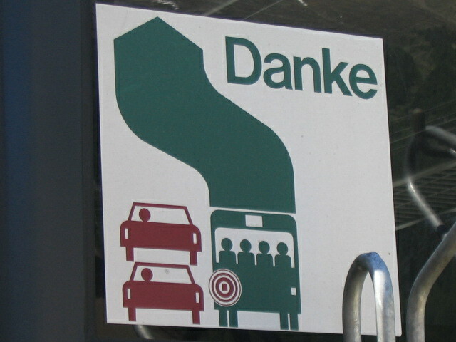 A sign on the back of the buses. It seemed amusingly cryptic at the time, I remember, for some reason. But now it's completely clear, as it's supposed to be: when you're coming up to a bus that's signalling to get back on the road from a stop, yield to it. I don't know why I was confused before.